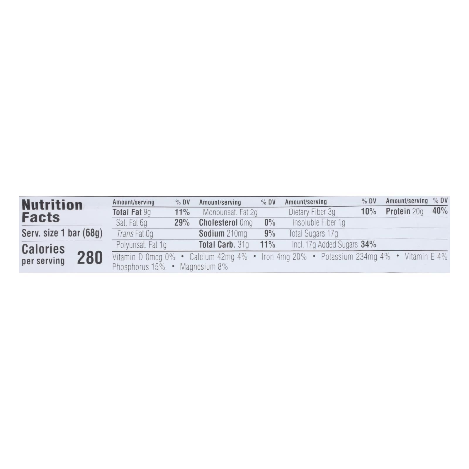 Our chocolate builder bar is the perfect bar for your next workout. With how hard you work, we want to ensure that you're getting everything you can out of your workout. That's why when we craft our bars, we make sure that every ingredient counts, and that we're only including what we would want in a protein bar. Each 2.4 oz. Bar packs a whopping 20 g. Of complete protein and essential amino acids to help muscle growth. Please review nutrition facts panel for allergen information. Here at clif, we believe that you're a work in progress. We're committed to building a better you inside and out. So whatever your fitness goals may be, there's a clif bar to help you get there.